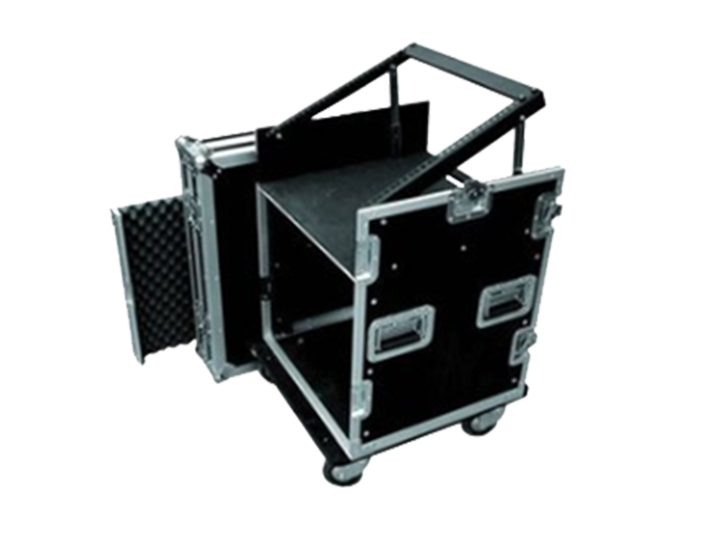 对角刹车万向脚轮,内贴25MM厚度的防震棉,可调升降架位、可调节调音台安装位置水平角度(方便使用者操作),
